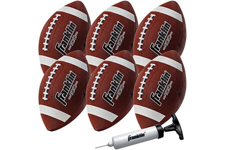- DURABLE KIDS FOOTBALL: These junior footballs are constructed from a durable, high-grip, deep-pebbled rubber that stands up to wear and tear on grass, concrete, or any other surface - EASY GRIP: The deep-pebble surface material and pro style raised laces ensure extra traction which makes the footballs easy to throw and catch - YOUTH SIZED: These official junior sized footballs are 10" long and 6" wide, which makes them perfect for kids who want to get out and practice their football skills - ALL-WEATHER: The water and weather-resistant rubber means you can bring this ball out to play rain or shine without damage - INDIVIDUAL OR TEAM PACKS: These balls are available for individual sale or in team packs of (6) footballs. Each team pack comes with an inflation pump for ball maintenance - included components: 6 deflated footballs with pump - sport type: American Football