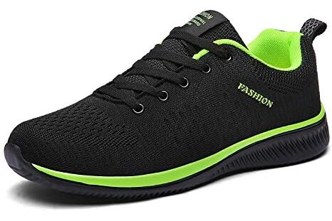 Sport Running Men Shoes Air Mesh Breathable Men Sneakers New Cushioning Casual Balck Shoes Lightweight Zapatillas De Deporte (9088-black green, 38)