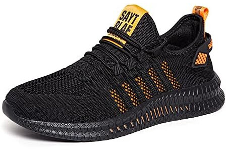 Sport Running Men Shoes Air Mesh Breathable Men Sneakers New Cushioning Casual Balck Shoes Lightweight Zapatillas De Deporte (6766-black orange, 41)