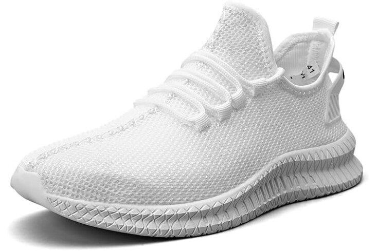 Sport Running Men Shoes Air Mesh Breathable Men Sneakers New Cushioning Casual Balck Shoes Lightweight Zapatillas De Deporte (7755-white, 46)