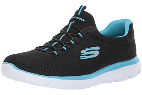 Skechers SUMMITS Shoes for Women, Black/Turquoise, 40 EU Wide