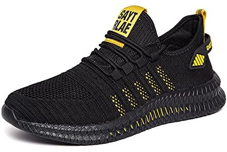 Sport Running Men Shoes Air Mesh Breathable Men Sneakers New Cushioning Casual Balck Shoes Lightweight Zapatillas De Deporte (6766-black yellow, 45)