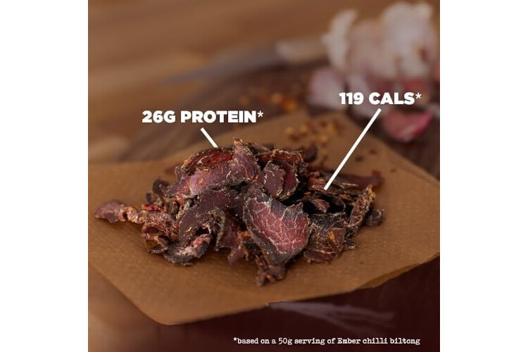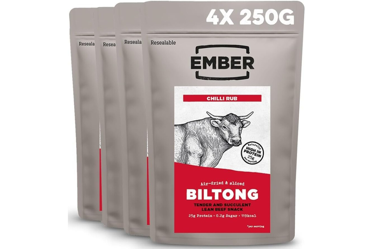 Ember Snacks: Biltong Beef Jerky Chilli Flavour Chilli Chilli (4x 250g = 1kg total) / High Protein Dried Beef Low Fat & Calorie / British Beef Based [Packaging May Vary]