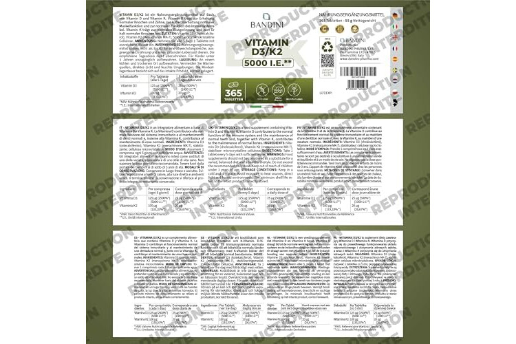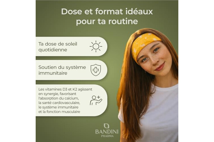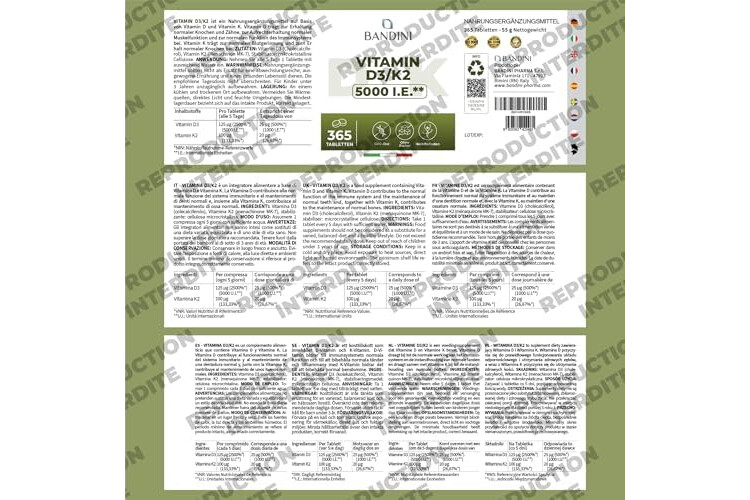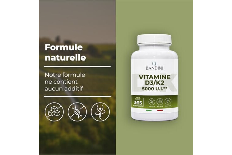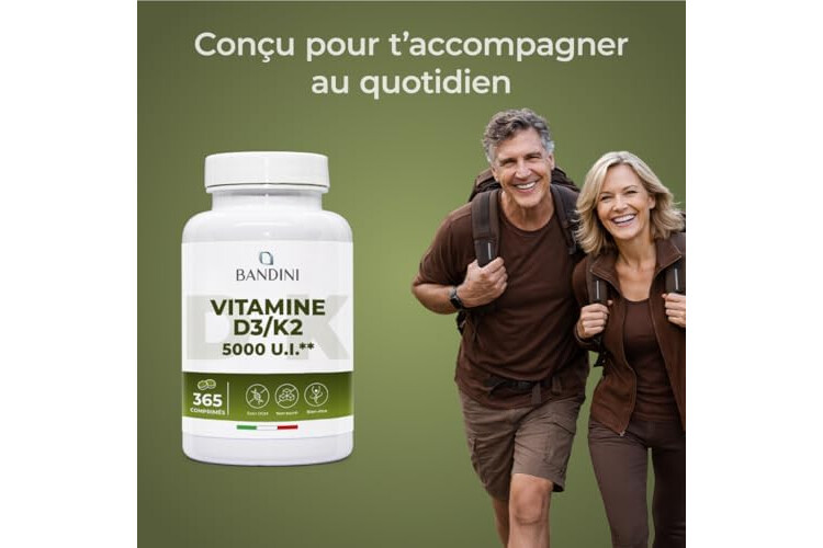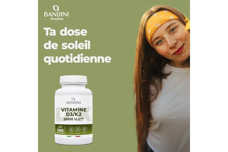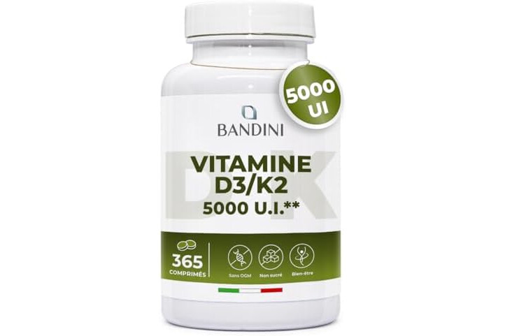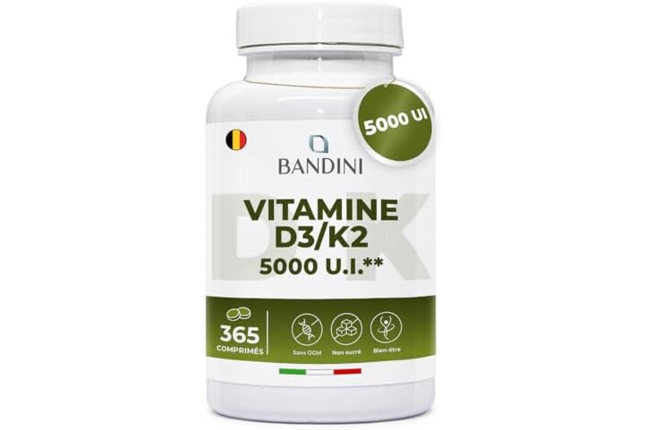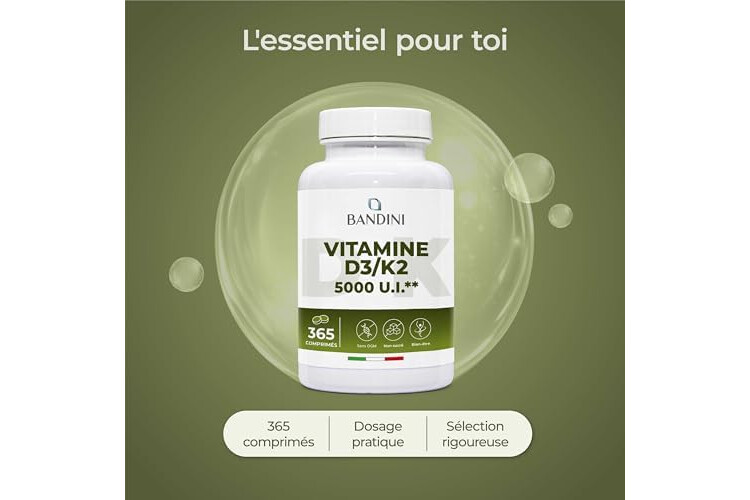 Bandini Vitamin D3 K2 365 Tablets 30,000 IU per month, Vitamins D 5000 IU/tablet, Premium Quality, 100 mcg K2, 99.7+% All-Trans K 2-MK7 + 5000 IU Cholecaciferol, Bone, Teeth, Immune System