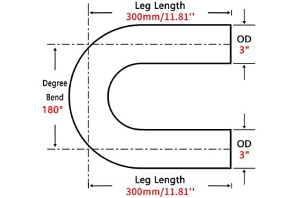 【Size】Outside Diameter: 3 Inch / 3''. Bending Angle: 180 Degree. One End Length: 300mm/11.81".
