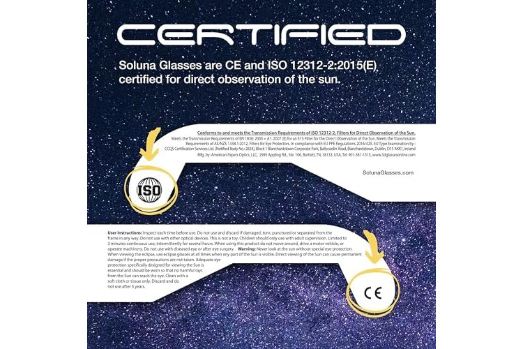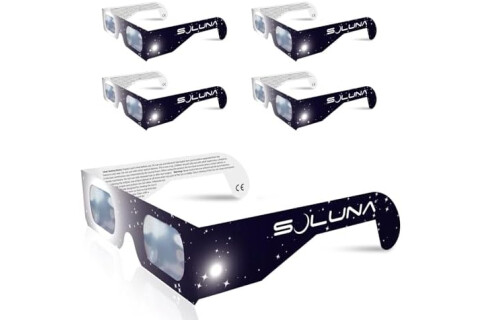 Soluna Solar Eclipse Glasses - CE and ISO Certified Safe Shades for Direct Sun Viewing - Made in the USA (5 Pack) - Lunettes Pour éclipse Solaire