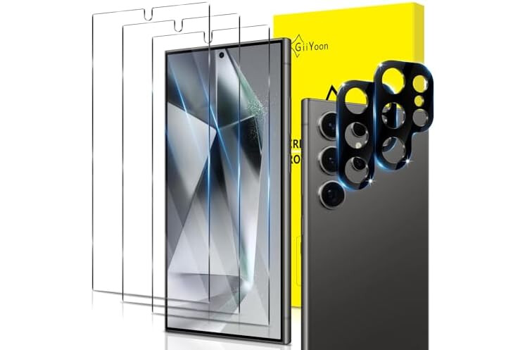 GiiYoon 2+3 Pack Screen Protector for Samsung Galaxy S24 Ultra with 3 Pack Tempered Glass Screen Protective Film and 2 Pack Camera Lens Protector [9H Hardness] Protective Film