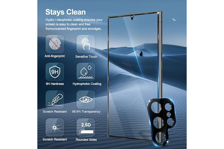 Fingerprint & Oil-Proof: The hydrophobic and oleophobic coating prevents fingerprints, oil residue and sweat from gathering on the screen. Always maintain a clean screen environment for you.