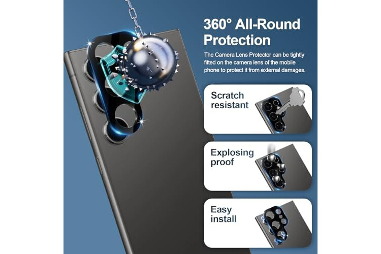 SPECIFICALLY DESIGNED: Designed for Samsung Galaxy S24 Ultra only, 3 Pack Screen Protective Film+2 Pack Camera Lens Protector, Full Protection, resists damage from all directions.