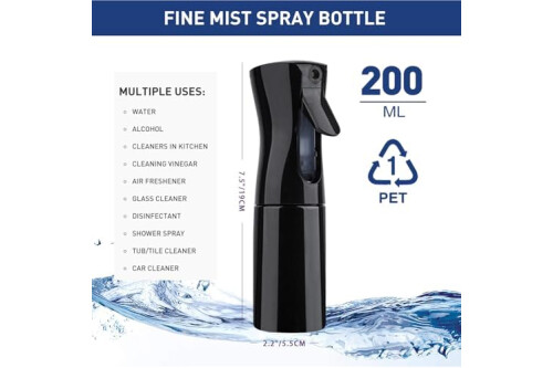 TANSHINE Continuous Hair Plant Mister Spray Bottle Fine Empty Small Mist Spray Bottles Mist Sprayer Water Alcohol Cleaning Spray Mist Bottle for Curly Hair Styling Products,Plants, 200ml,Black