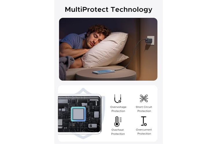 Intelligent Protection System: Automatically protects your devices against overvoltages, overcurrents, and short circuits, while intelligent temperature control dynamically regulates power to prevent overheating. Ensures 100% safe charging and extends the battery life of your devices