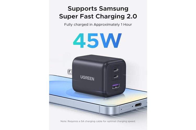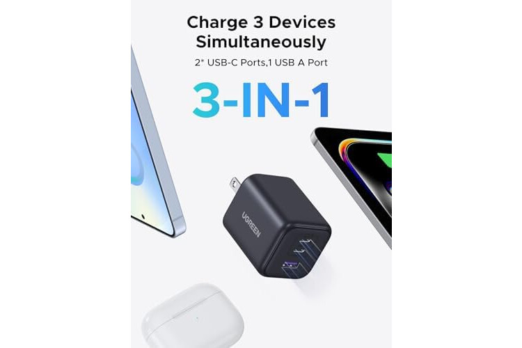 UGREEN 45W USB C Charger Block with 2 USB C and USB A Ports, GAN PPS 3 Port Super Fast Charger for iPhone 17 Pro Max/16, Galaxy S25/S24 Ultra, Pixel 8 Pro, iPad, MacBook Air