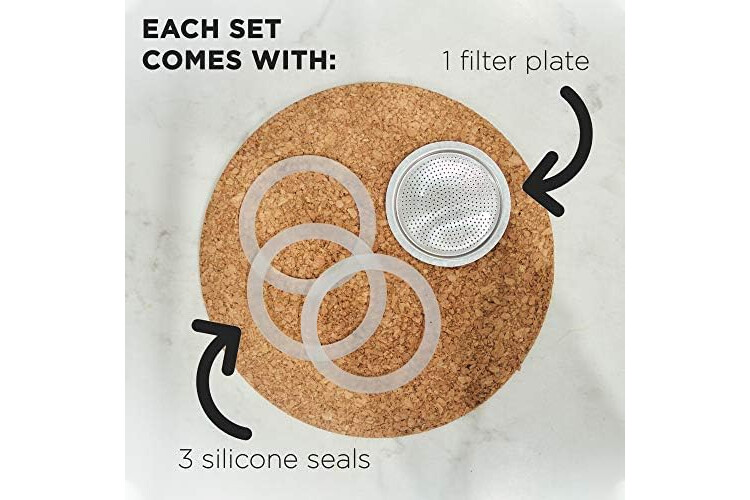 ⭐ [ High quality silicone replacement gasket seal ] Unlike white rubber gasket seals , this is made from premium durable silicone. Ordinary rubber replacement gaskets harden with use, but the Milano silicone gasket will seal better almost 3x longer than a cheap rubber stovetop espresso machine gasket. Major brands of moka pots like GROSCHE and others. We recommend replacing the gasket every 3 to 4 months & the filter screen once a year
