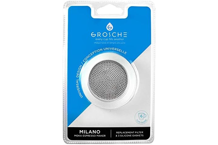 ⭐ [Fits all GROSCHE Milano Aluminium Stovetop espresso maker moka pots] The Milano stovetop espresso gasket & moka pot filter set is designed to fit GROSCHE moka pots. It does fit several other brands as well - PLEASE CHECK SIZE CAREFULLY BEFORE YOU BUY. If you need a espresso gasket fopr any other brand of stovetop espresso maker gasket, CHECK SIZE CAREFULLY before ordering.