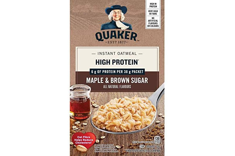Quaker High Protein Maple & Brown Sugar Instant Oatmeal Cereal (6 Packets x 38g), 228 g