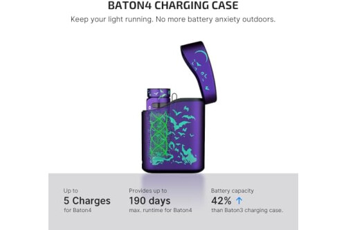 ๐๐ถ๐ด๐ต๐ฒ๐ฟ-๐ฐ๐ฎ๐ฝ๐ฎ๐ฐ๐ถ๐๐ ๐ฃ๐ผ๐๐ฒ๐ฟ - The charging case allows you to fully charge the compact light Baton4 up to five times, providing up to 190 days of runtime for this comapct flashlight.
