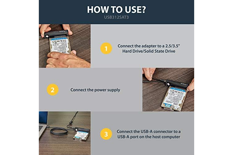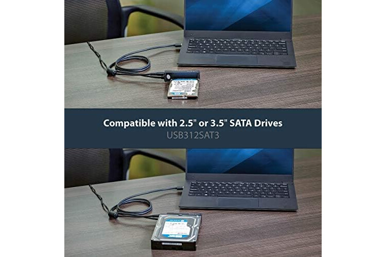 CONNECT FROM ANYWHERE: The SATA to USB converter is a portable solution with an integrated cable. 2.5" drives can be powered via USB power. An external power adapter is included for powering 3.5" drives or 2.5" drives that require more power.