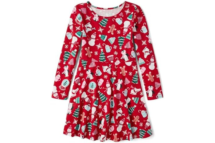 The Children's Place Girls Printed Skater Dress, Long Sleeve