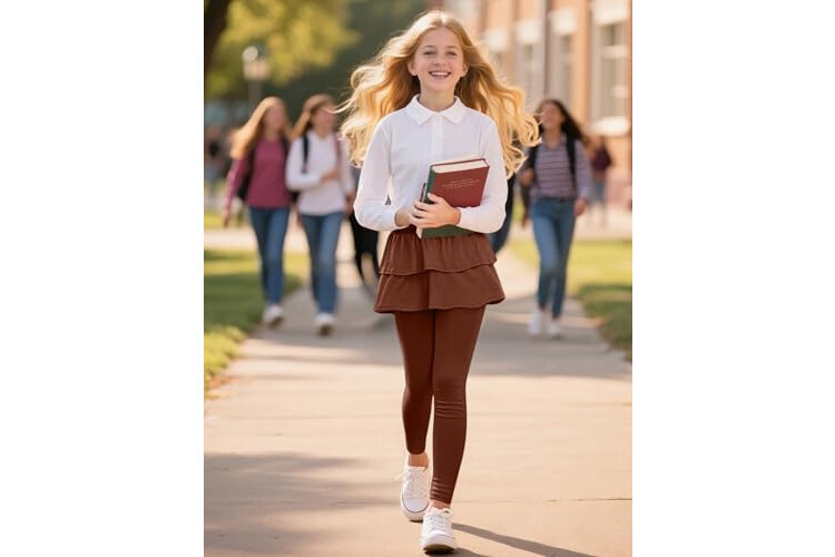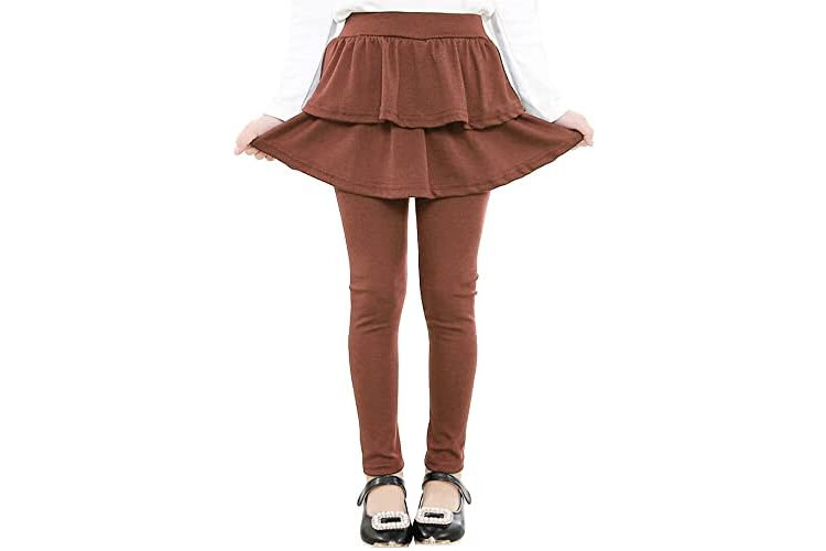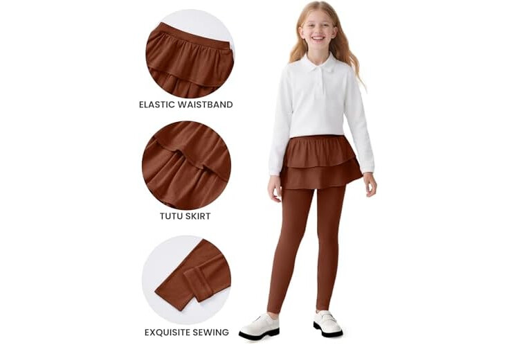Auranso Girls School Uniform Pants Kids Clothes Ruffle Tutu Leggings with Skirt 2-14 Years