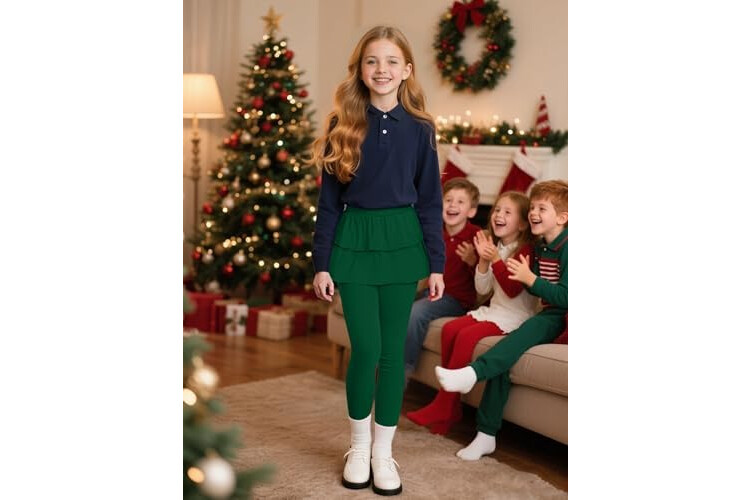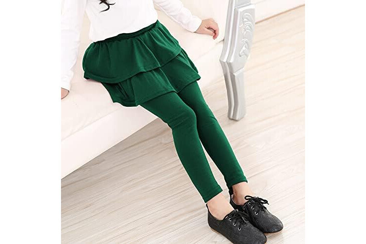 Auranso Girls School Uniform Pants Kids Clothes Ruffle Tutu Leggings with Skirt 2-14 Years
