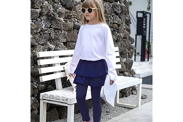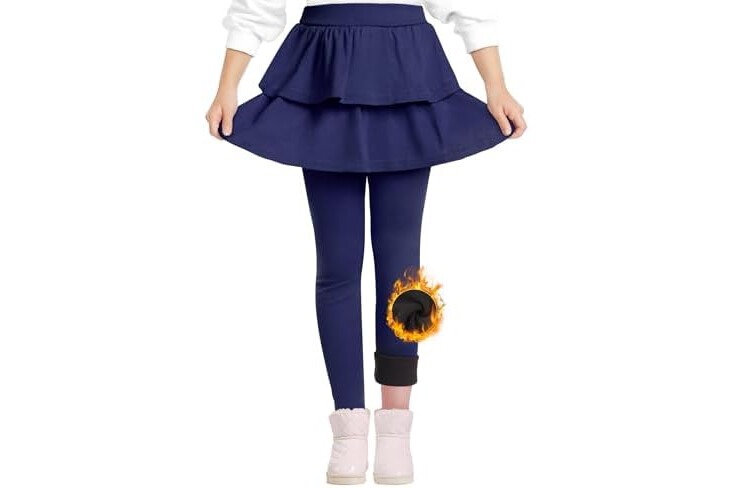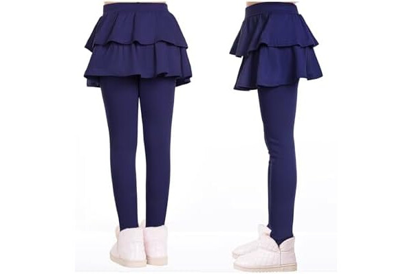 Witwot Girls Fleece Lined Leggings with Skirt Toddler Tutu Pants 10-12 Years Navy