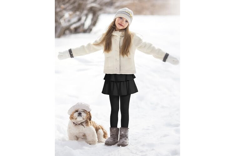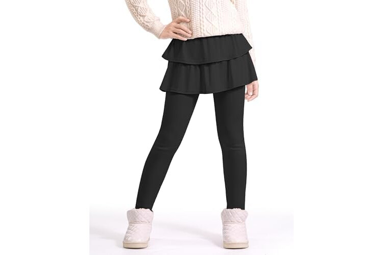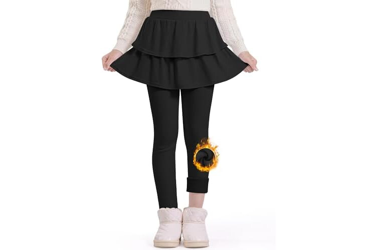 Auranso Girls Fleece Lined Leggings with Skirt Kids Winter Warm Tutu Pants 4-14 Years