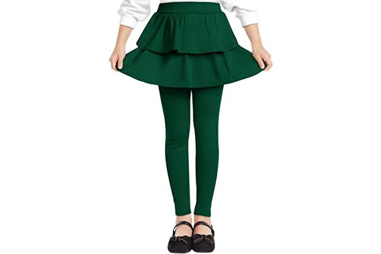 Witwot Girls Leggings with Skirt School Uniform Pants for Kids Green 9-10 Years