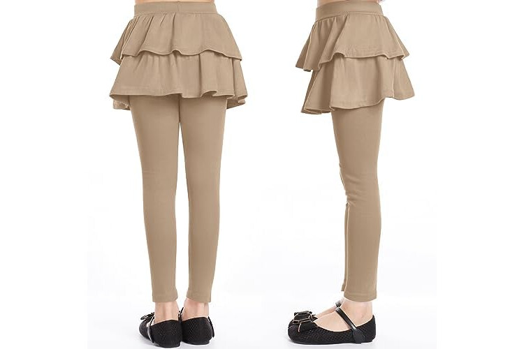 Witwot Girls Leggings with Skirt School Uniform Pants for Kids Brown 7-8 Years
