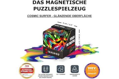 Shashibo Shape Shifting Box - Award-Winning STEM Fidget Toy with Ultra Strong Magnets - Puzzle Cube Transforms Into 100+ Shapes, Perfect Sensory Gift for Kids, Teens, and Adults (Cosmic Surfer)