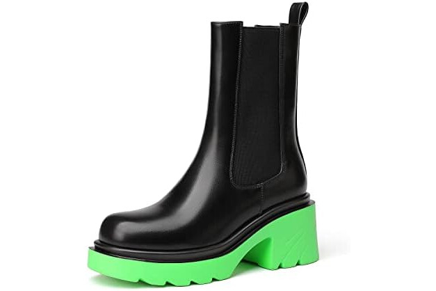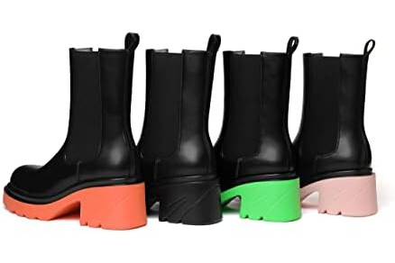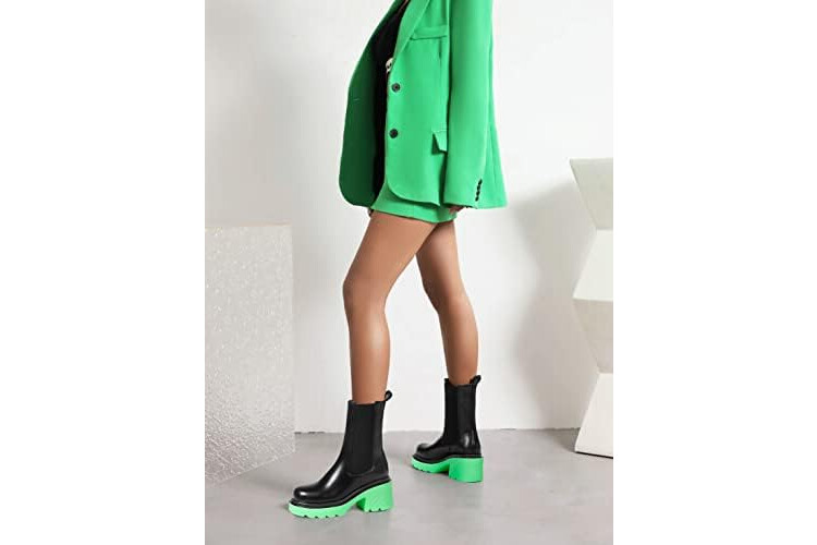 vivianly Womens Chelsea Boots Lug Sole Platform Mid Calf Boots Elastic Slip on Boots Block Heel Ankle Boots for Casual Wear, Costume