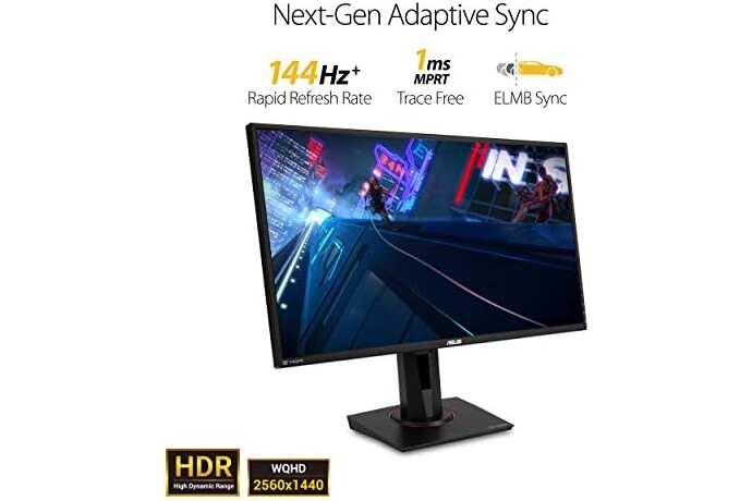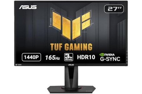 ASUS TUF Gaming 27" 2K HDR Gaming Monitor (VG27AQ) - QHD (2560 x 1440), 165Hz (Supports 144Hz), 1ms, Extreme Low Motion Blur, Speaker, G-SYNC Compatible, VESA Mountable, DisplayPort, HDMI ,Black