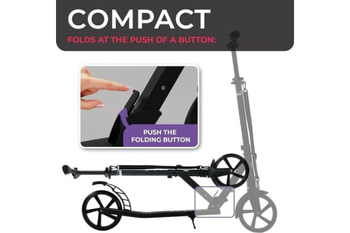 Fold and Carry: Need to stash it away? This foldable scooter makes it easy with a quick push-button mechanism and a handy carrying strap. Just sling it over your shoulder and you're good to go, whether you're on public transit or heading to class