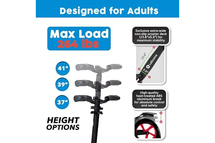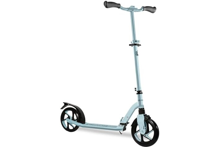 Lascoota Fun Ride: The Lascoota Adult Kick Scooter in Vintage Blue is your ticket to a cool commute or a casual cruise. Enjoy a smooth glide with its front suspension and durable wheels, perfect for teens or adults looking for a big kid scooter experience