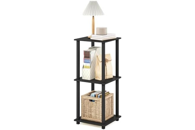 Furinno SIMPLISTIC Side Table Set of 2, 2-Tier Square Modern End Table, Nightstand, Night Stand, Bedside Table, Toolless Assembly, for Living Room, Bedroom, Americano