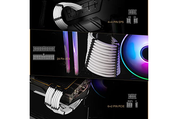 EZDIY-FAB PSU Extension Cable Sleeved Custom Mod PC Power Supply Cable, Soft Nylon Braided with Comb Kit 24PIN/8PIN to 6+2Pin/ 8PIN to 4+4PIN-30CM 300MM - White