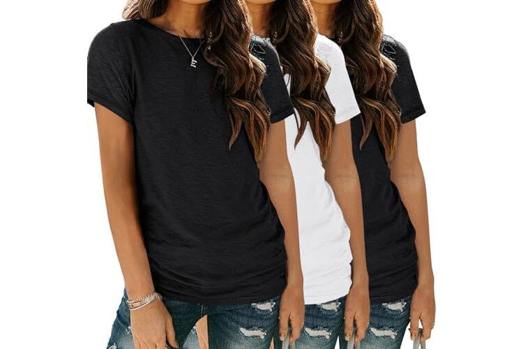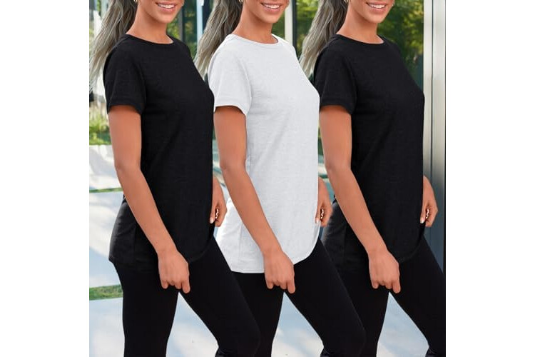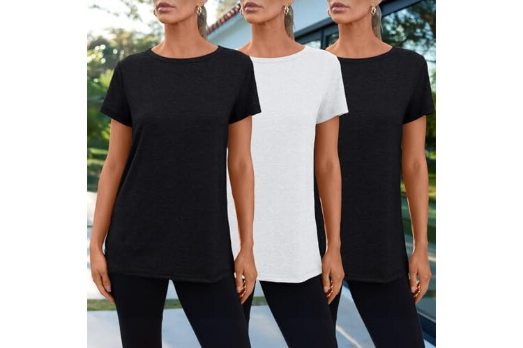 SUNBS Womens 3 Pack T-Shirts Short Sleeve Summer Tops Fashion Basic Tees Comfy Casual Vacation Outfits Workout Clothes 2025