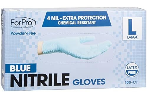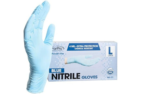 ForPro Disposable Nitrile Gloves, Chemical Resistant, Powder-Free, Latex-Free, Non-Sterile, Food Safe, 4 Mil