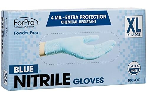ForPro Disposable Nitrile Gloves, Chemical Resistant, Powder-Free, Latex-Free, Non-Sterile, Food Safe, 4 Mil