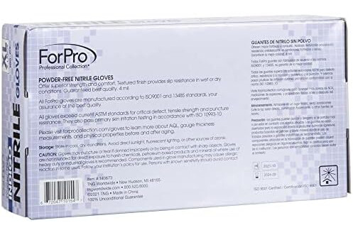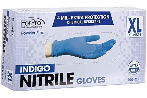 ForPro Professional Collection Disposable Nitrile Gloves, Chemical Resistant, Powder-Free, Latex-Free, Non-Sterile, Food Safe, 4 Mil, Indigo, X-Large, 100-Count