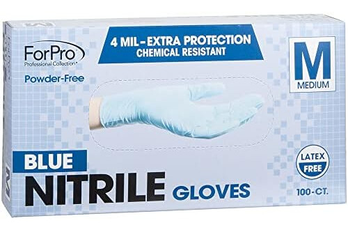 ForPro Disposable Nitrile Gloves, Chemical Resistant, Powder-Free, Latex-Free, Non-Sterile, Food Safe, 4 Mil