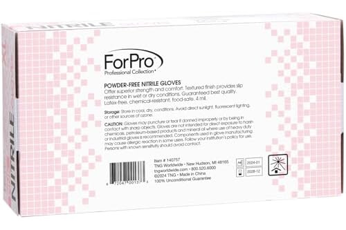 ForPro Professional Collection Disposable Nitrile Gloves, Chemical Resistant, Powder-Free, Latex-Free, Non-Sterile, Food Safe, 4 Mil, Pink, Medium, 100-Count