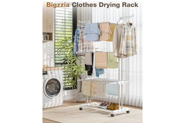 PREMIUM MATERIAL: Bigzzia clothes drying rack is made of high quality stainless steel and durable plastic, strong load bearing capacity and stability.