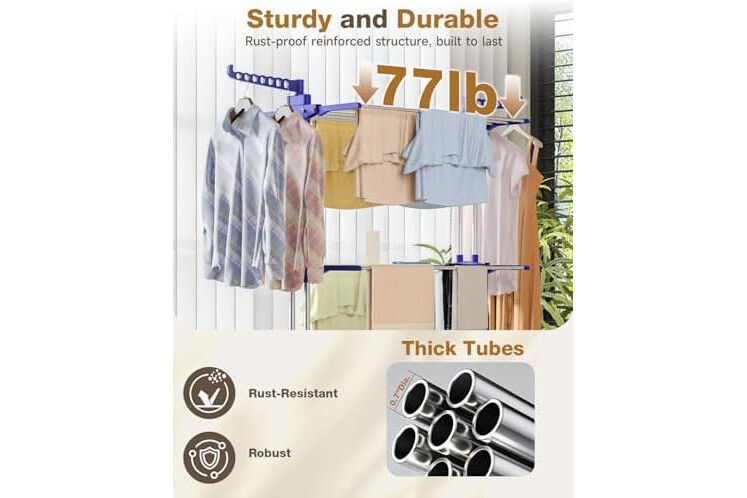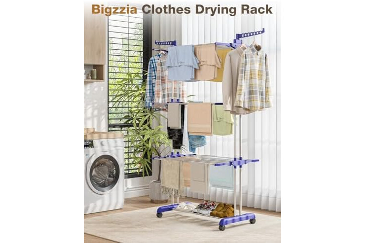 PREMIUM MATERIAL: Bigzzia clothes drying rack is made of high quality stainless steel and durable plastic, strong load bearing capacity and stability.