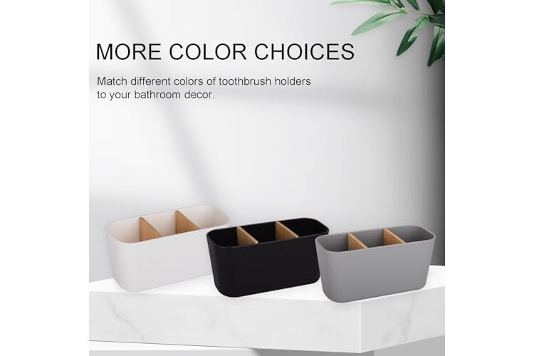 Toothbrush Holders for Bathrooms, Bamboo Tooth Brush Holder with 3 Slots Bathroom Vanity Organizer Countertop for Electric Toothbrushes, Toothpaste, Razors - White