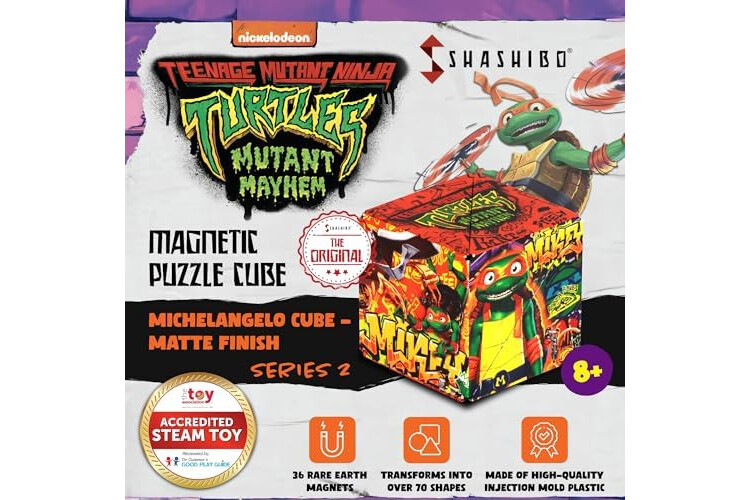 Designed For Comfort - Shashibo means award-winning quality. The innovative design of the puzzle cube gently fits the hand for hours of mind-challenging fun! It is built of premium injection mold plastic, 36 rare earth magnets, and a tear-proof, matte surface. Covered with tons of Ninja Turtles' artistic patterns & mesmerizing artwork, for a special TMNT story in over 70 shapes.