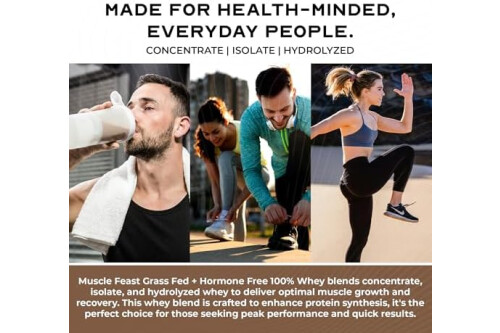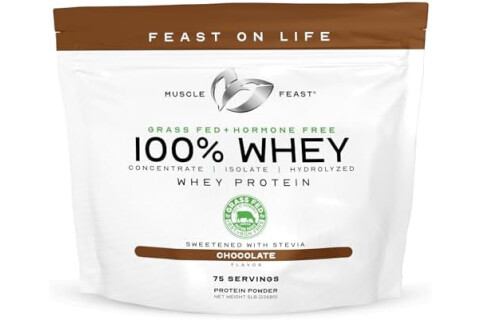 Muscle Feast 100% Grass Fed Whey Protein Powder, All Natural Hormone Free Paure Raised Whey Protein Powder for Women & Men- Whey Concentrate, Isolate & Hydrolyzed Protein Powder Blend - Chocolate, 5lb