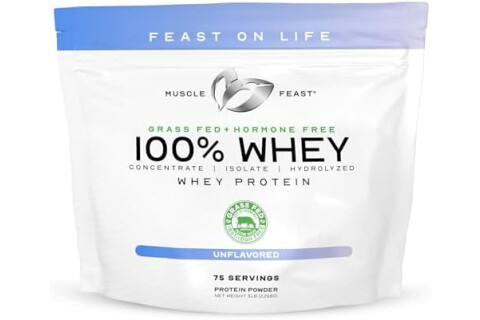 Muscle Feast 100% Grass Fed Whey Protein Powder, All Natural Hormone Free Paure Raised Whey Protein Powder for Women & Men- Whey Concentrate, Isolate & Hydrolyzed Protein Powder Blend- Unflavored, 5lb