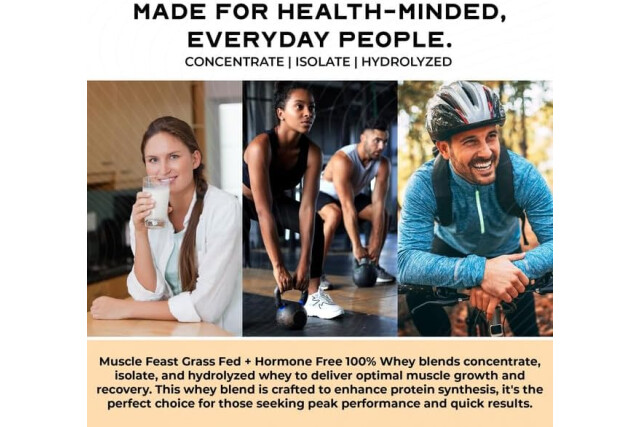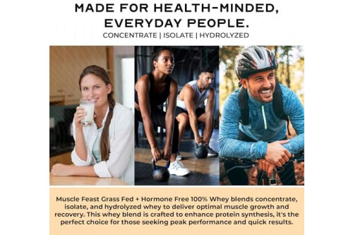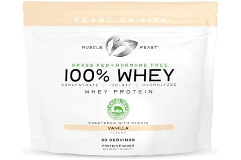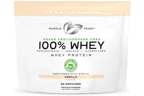 Muscle Feast 100% Grass Fed Whey Protein Powder, All Natural, Hormone Free Paure Raised Whey Protein Powder for Women & Men - Whey Concentrate, Isolate & Hydrolyzed Protein Powder Blend - Vanilla, 2lb