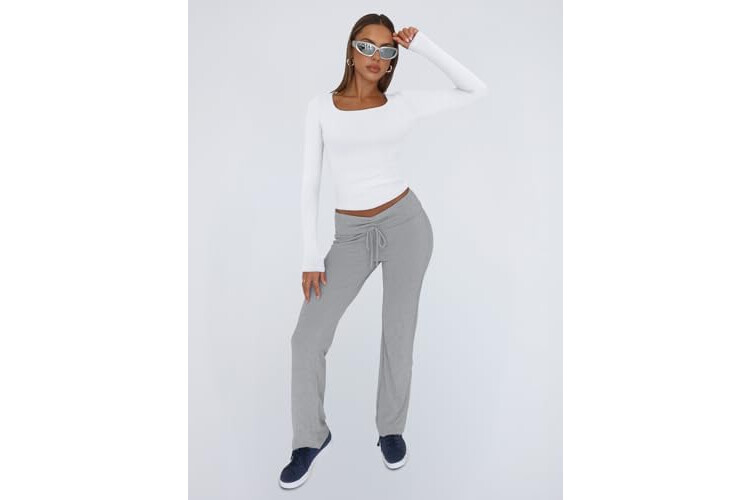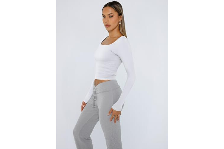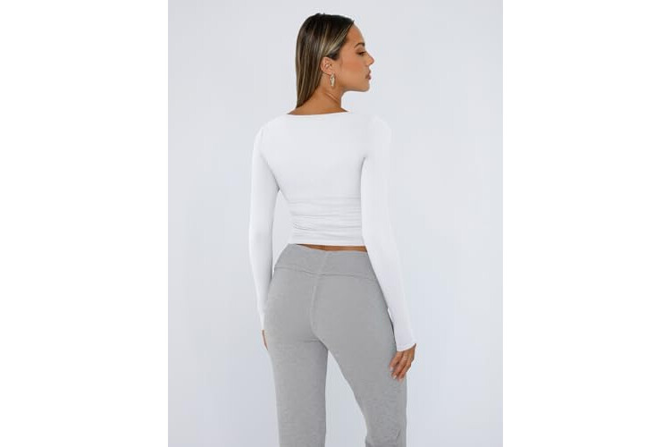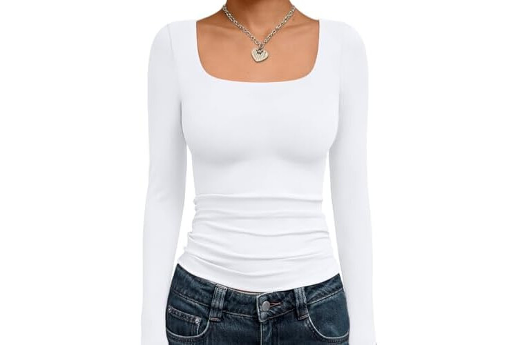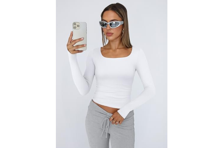 Trendy Queen Womens Long Sleeve Shirts Crop Tops Fall Fashion Solid Square Neck Going Out Basics Tees Y2k Clothes