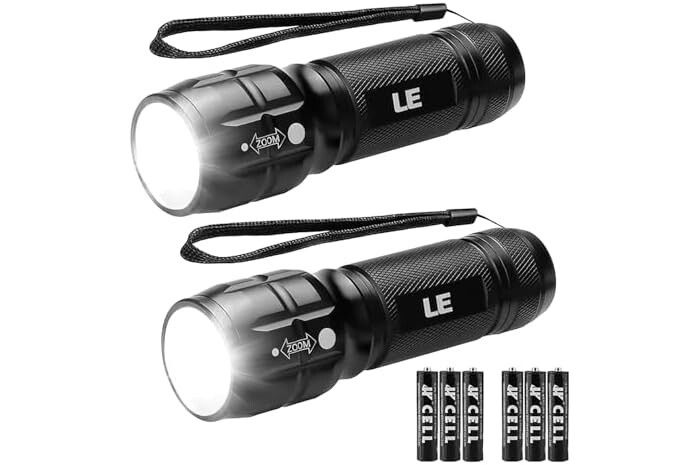 Lighting EVER LED Flashlights High Lumens, Small Flashlight, Waterproof, Adjustable Focus Flash Light for Outdoor, Emergency, Camping, AAA Batteries Included, 2 Pack
